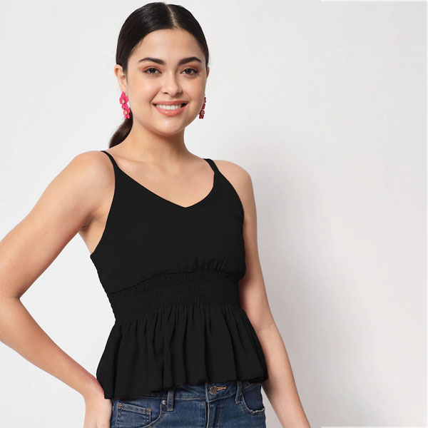 Woman Black Crepe Peplum Top