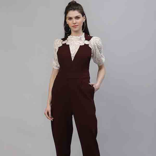 Women Burgundy Solid Basic Jumpsuit
