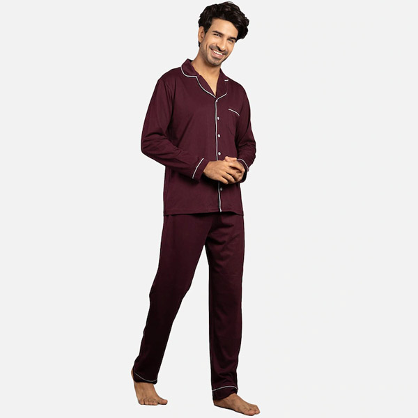 Men Brown & White Night suit