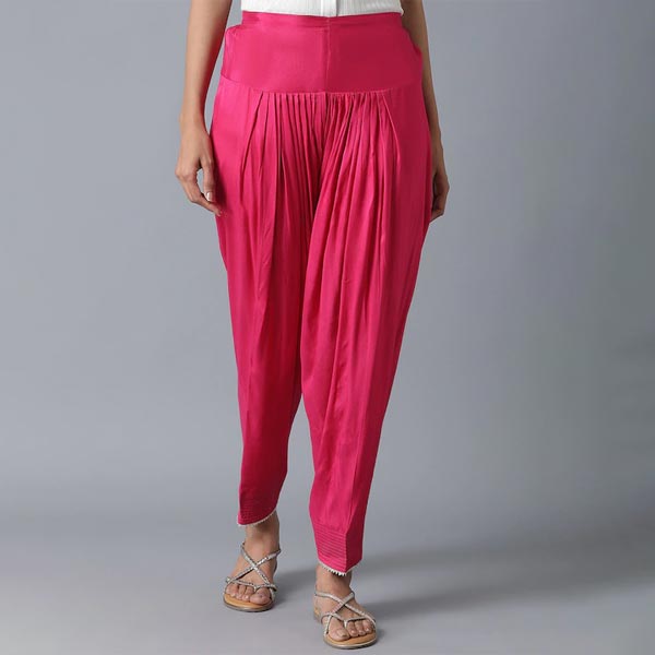 Pink floral solid mid-rise salwar